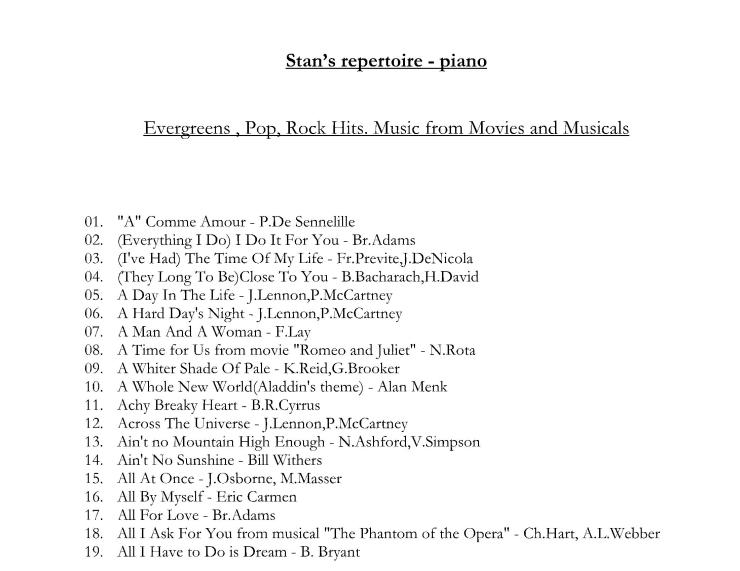 Pianist for Private parties, Weddings, Receptions, Corporate Events. Hotels, Casinos, Cruise Ships.
